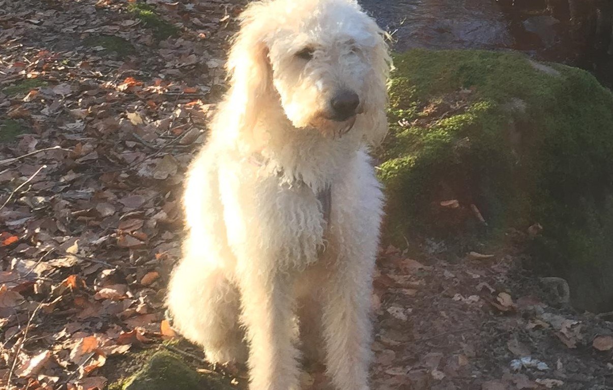 Idag åkte jag och Matte till Osbecksskogen i Hasslöv. Jag älskar att vara där och det jag tycker bäst om är när matte släpper mig och jag får springa helt fritt. Jag tyckte dock att matte flåsade ovanligt mycket uppför den branta