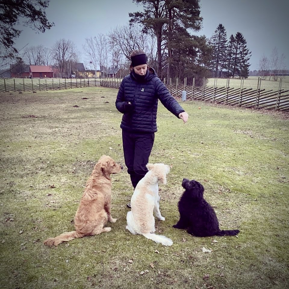 PÄ em var det trÀning pÄ Ekets hundarena, aktivitetskurs med Susan och fler hÀrliga deltagare. HÀr trÀnar vi lydnad. SÄ duktiga Àven om Molly inte hade vÀrldens bÀsta motivation.