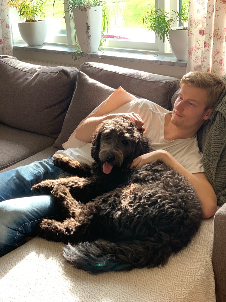 Selina, innan pälsvård, och visst är hon fin med sin tjocka päls. Det är dock riktigt svårt att hålla den fri från tovor i regn, rusk och sol sååå…Selina, efter pälsvård🐾, känns som en helt ny hund❤️Lilla Edna och min familj på hennes dopdag❤️Myspys med Jeppe❤️Molly❤️