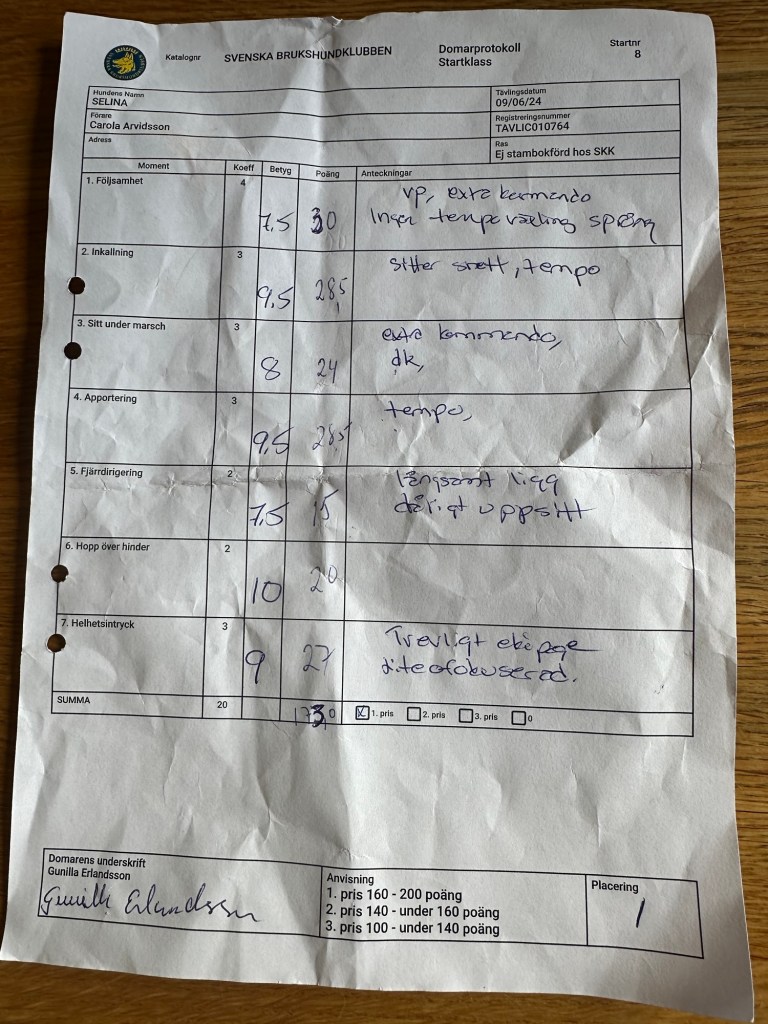Jajamän, idag är absolut första gången vi tävlat i lydnad-startklass och så gick vi, nybörjarparet, och vann⭐️⭐️⭐️. Vi fick de högsta poängen!! Fina, duktiga Selina. Det var kul att all träning ger resultat och att jag bestämde mig för ATT tävla. Nu blir vi uppflyttade till lydnad 1 vilket innebär nya träningsmoment. Detta ska bli kul🙌