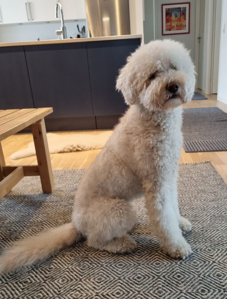 Hon kommer successivt förbi sina rädslor och har nu, nyss 2 år, accepterat att dela boende med dammsugaren. Pepsi är fantastiskt bra på att växla tempo -efter lek och bus slappar hon strax i soffan. Pepsi uppskattar utflykter. Gärna skogspromenader men att finpromenera på stan är också spännande. Trivs med att åka bil och går gärna på restaurang eller fik där hon vet att uppföra sig. Pepsi är lätt att hantera på alla sätt; en underbar vacker och mysig labradoodle (Ronny, Pepsis husse).